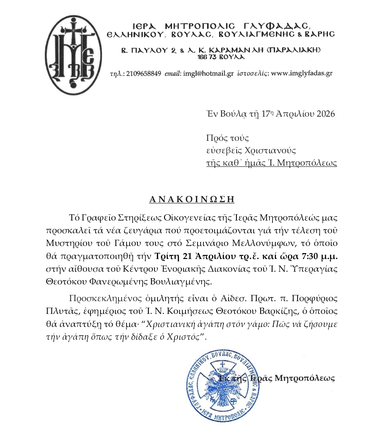 ΣΕΜΙΝΑΡΙΟ ΜΕΛΛΟΝΥΜΦΩΝ (21.4.2026)
