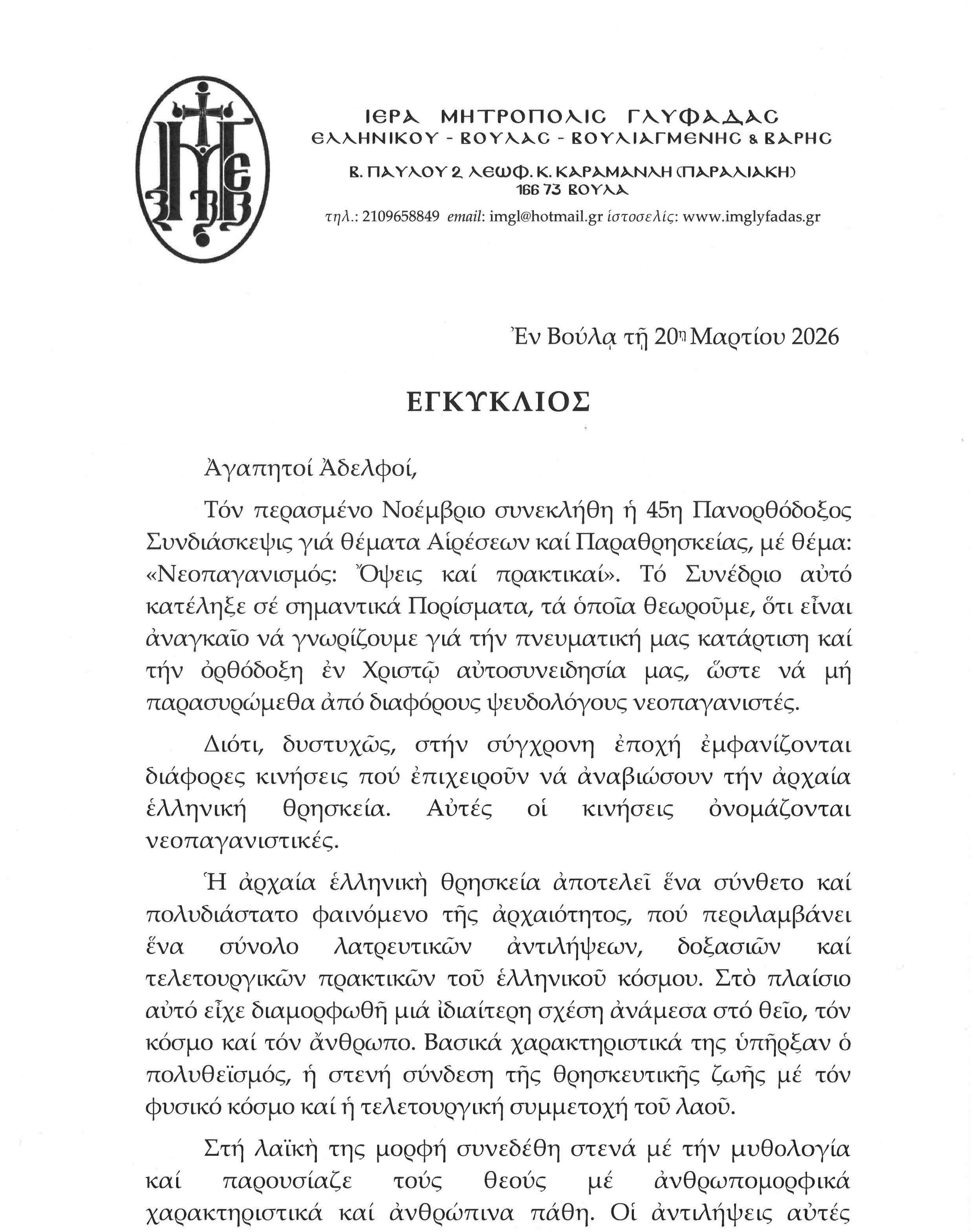 ΕΓΚΥΚΛΙΟΣ ΕΠΙ Τῼ ΑΓΙῼ ΠΑΣΧᾼ 2026 »